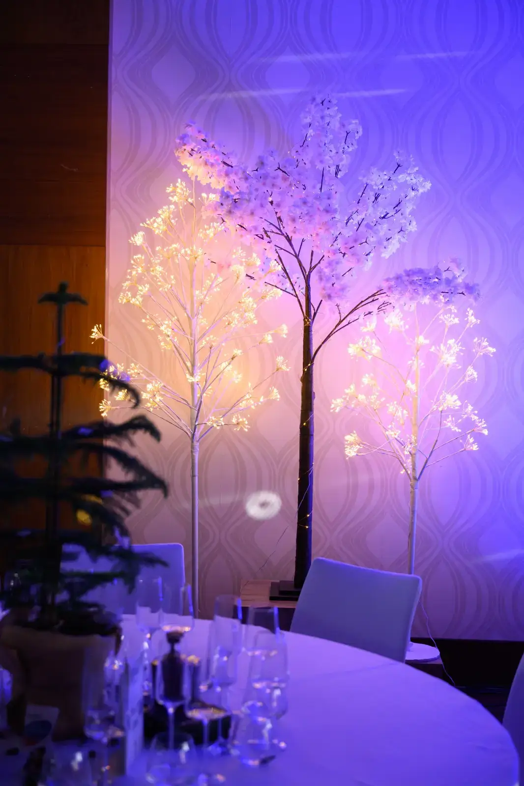 • Svetelné stromčeky – elegantné detaily, ideálne ako centrálne dekorácie stolov